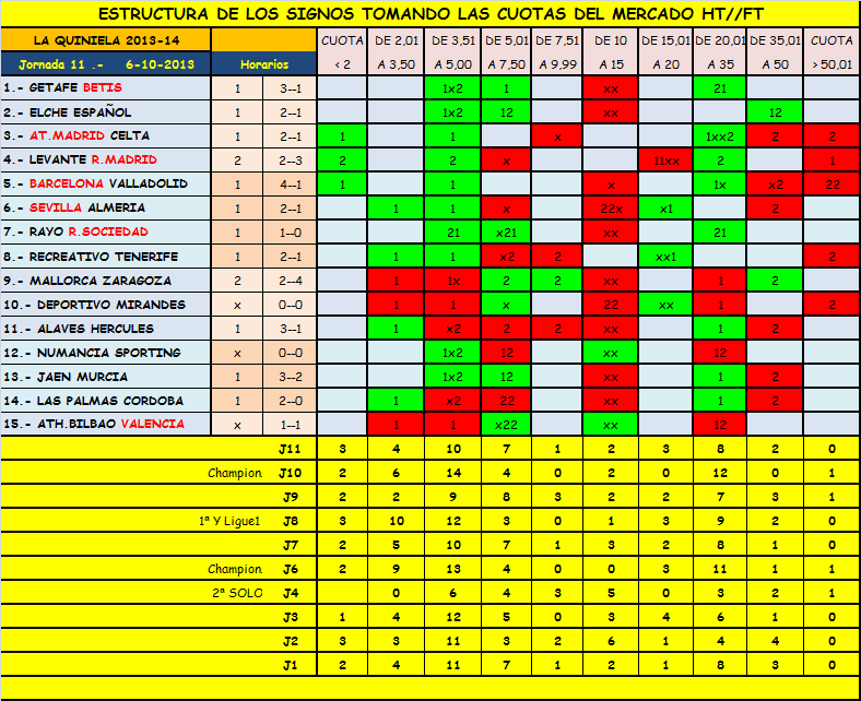 Aquí teneis la información para esta jornada 11 de quinielas,como siempre,a ver si alguno ve la luz y soríe al final del fin de semana con un buen pellizco.