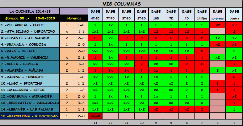 QUINIELA JORNADA 50 Y QUINIGOL JORNADA 59,SABADO,DOMINGO Y LUNES 9-10 Y 11 DE MAYO 2015.