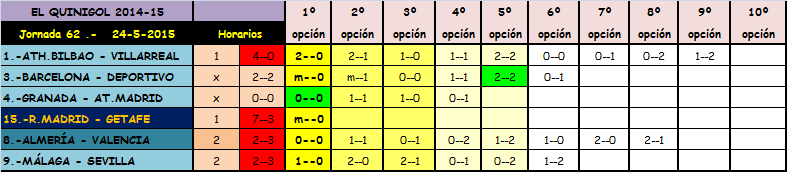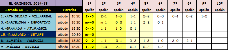 QUINIELA JORNADA 53 Y QUINIGOL JORNADA 62,SABADO Y DOMINGO 23 Y 24 MAYO 2015.