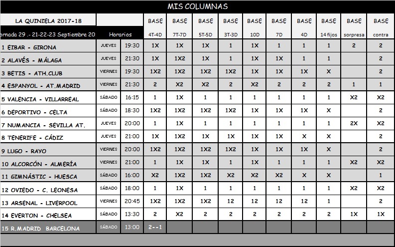 QUINIELA 29, JUEVES, VIERNES Y SÁBADO 21-22 Y 23 DE DICIEMBRE 2017.