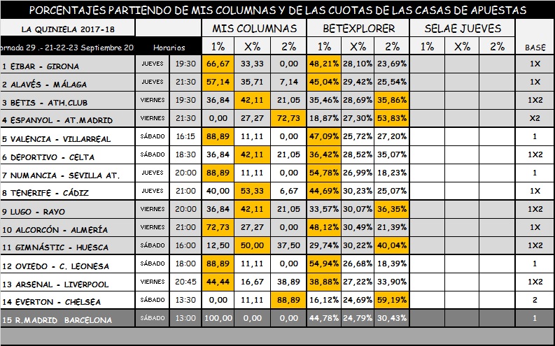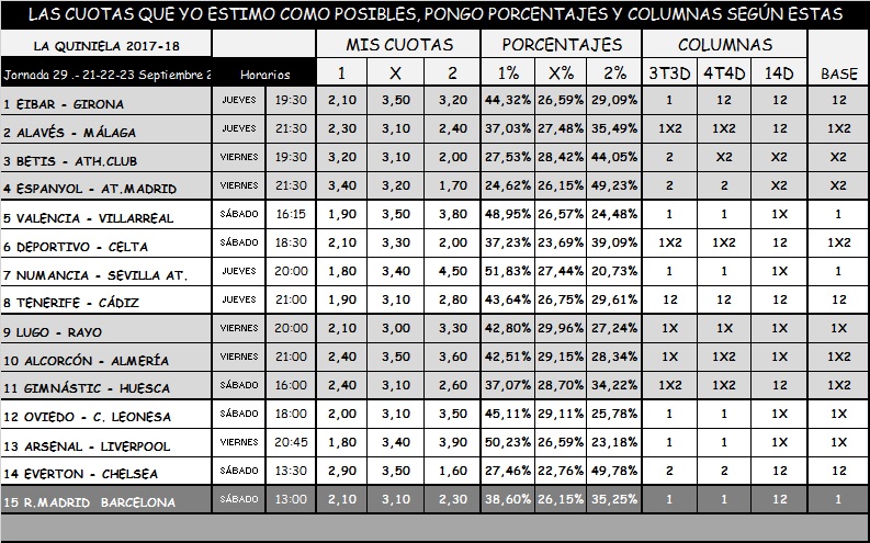 QUINIELA 29, JUEVES, VIERNES Y SÁBADO  21-22 Y 23 DE  DICIEMBRE 2017.