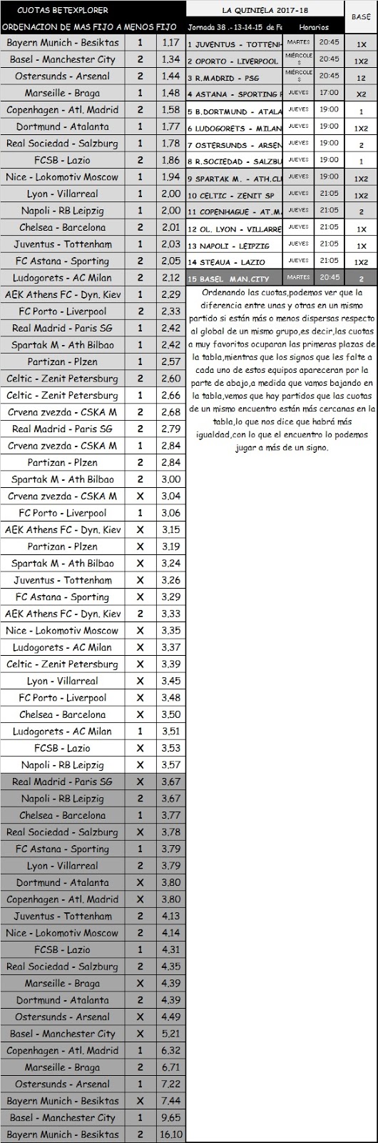 QUINIELA 38, MARTES, MIERCOLES Y  JUEVES 13-14 Y 15 DE  FEBRERO 2018.