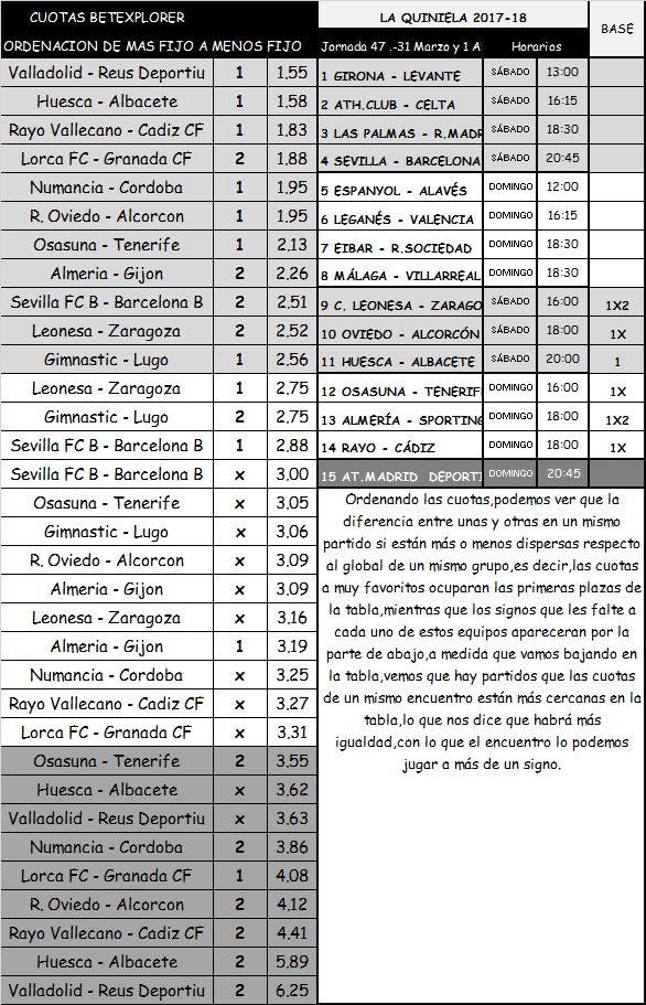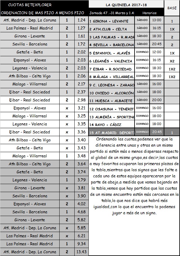 QUINIELA 47, SÁBADO Y DOMINGO 31 DE MARZO Y 1 DE ABRIL 2018.