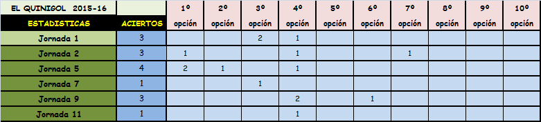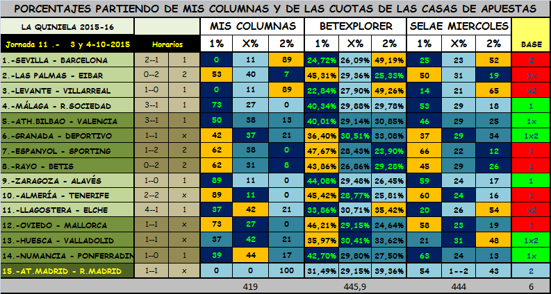 RESULTADOS QUINIELA JORNADA 11,DOMINGO 4 OCTUBRE 2015.