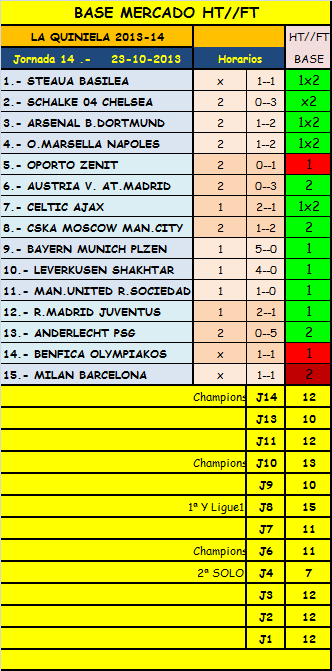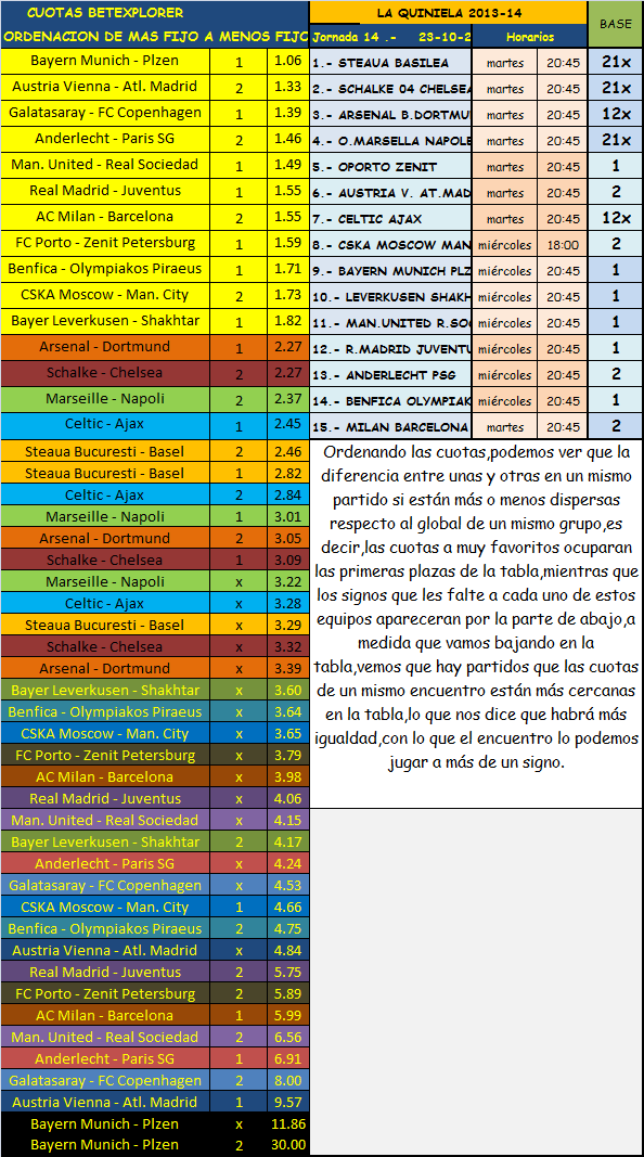 ; Quiniela jornada 14 y quinigol jornada 16,Champions League,22 y 23 Octubre 2013. Skip to main content