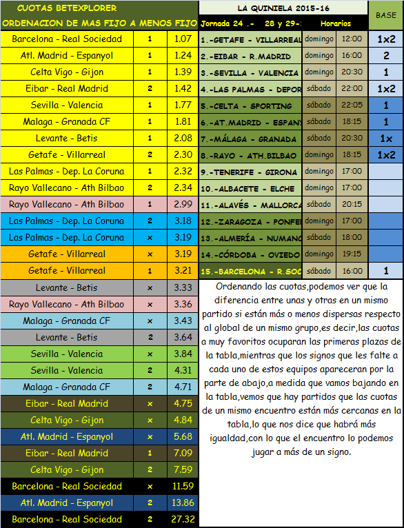 QUINIELA JORNADA 24,SABADO Y DOMINGO 28 Y 29 NOVIEMBRE 2015.