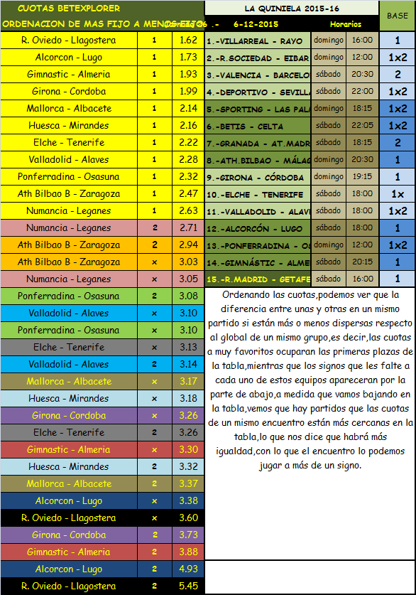 QUINIELA JORNADA 26,SABADO Y DOMINGO 5 Y 6 DICIEMBRE 2015.