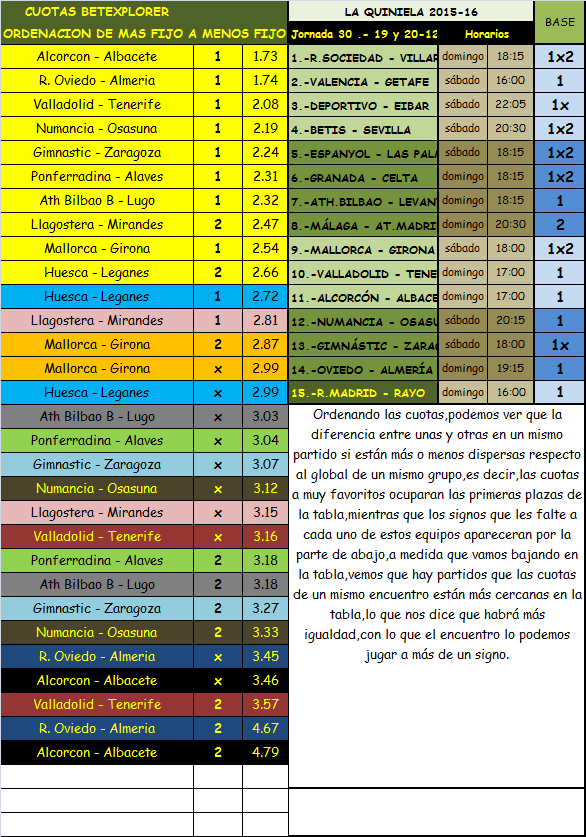 QUINIELA JORNADA 30, SABADO Y DOMINGO 19 Y 20 DICIEMBRE 2015.