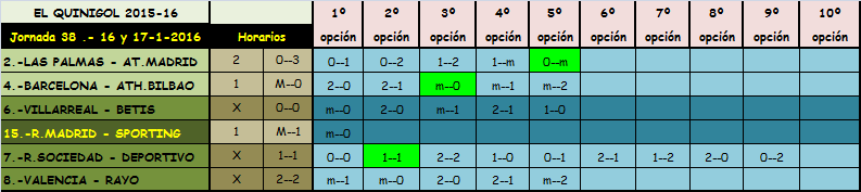 QUINIELA JORNADA 34, SABADO Y DOMINGO 16 Y 17 ENERO 2016.
