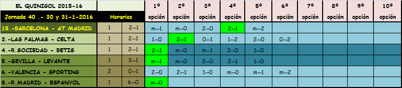 QUINIELA JORNADA 36, SABADO Y DOMINGO, 30 Y 31 ENERO 2016.
