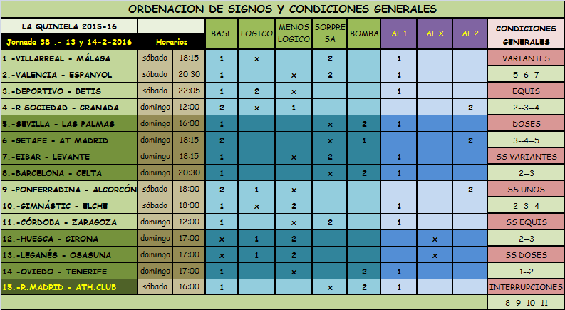 bueno termino lo de la combi que faltaba en la parte de la quiniela, para que no haya tanto riesgo, bien teniamos la combi de 12 partidos: