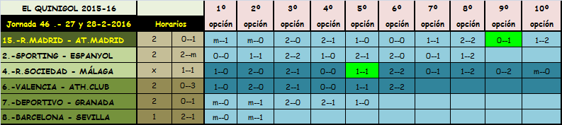 RESULTADOS QUINIELA JORNADA 42, DOMINGO 28-2-2016.