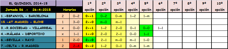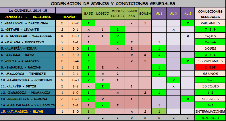 RESULTADOS QUINIELA JORNADA 47 Y QUINIGOL JORNADA 56,DOMINGO 26 ABRIL 2015.