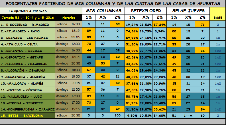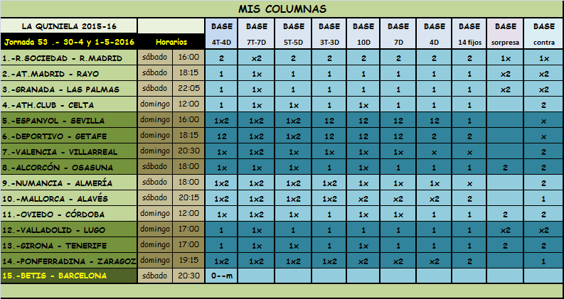 ; QUINIELA JORNADA 53, SABADO Y DOMINGO 30-4 Y 1-5-2016. Skip to main content