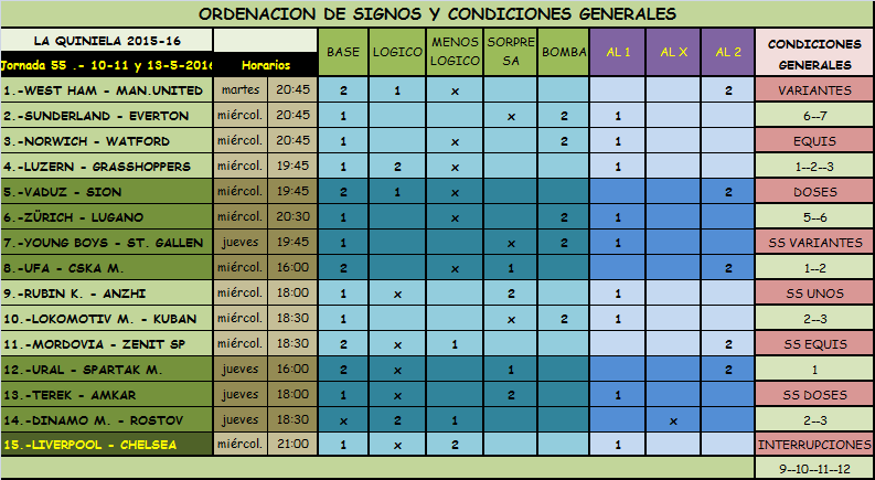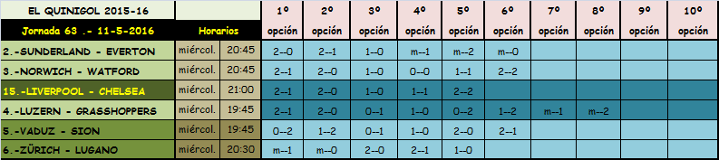 QUINIELA JORNADA 55, MARTES, MIERCOLES Y JUEVES, 10-11-12 MAYO 2016.