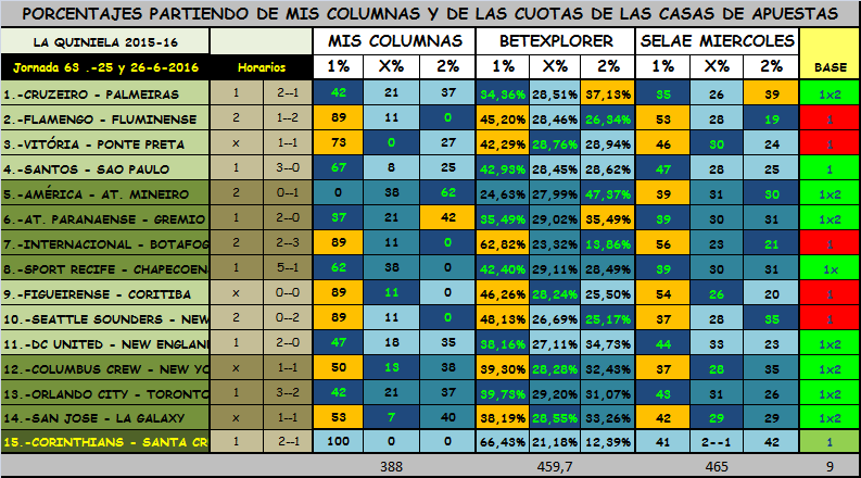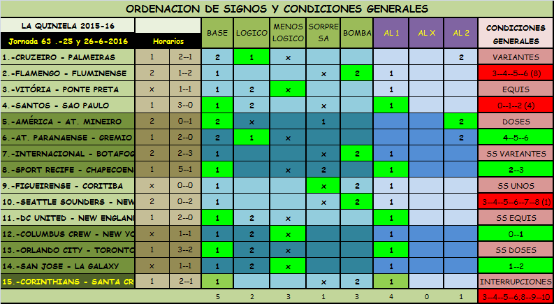 QUINIELA JORNADA 63, SABADO Y DOMINGO 25 Y 26 JUNIO 2016.
