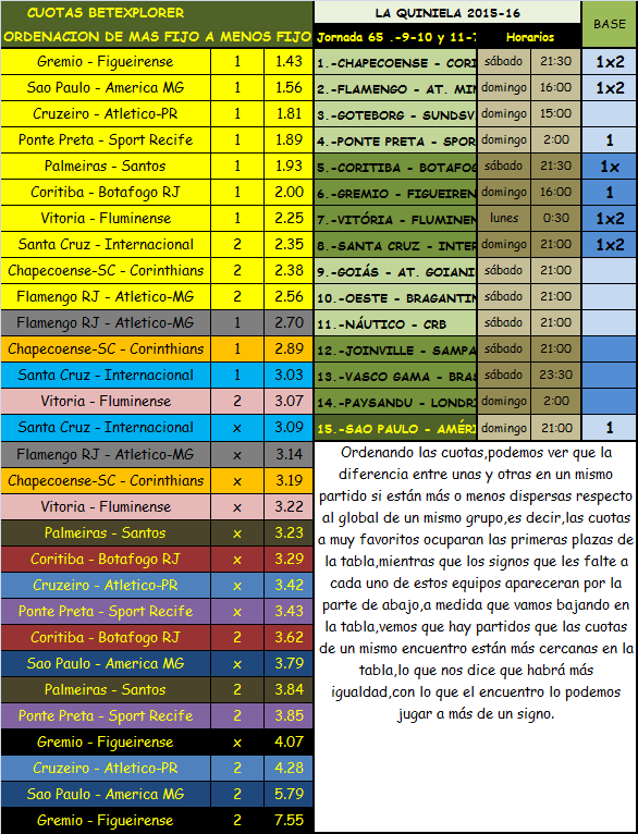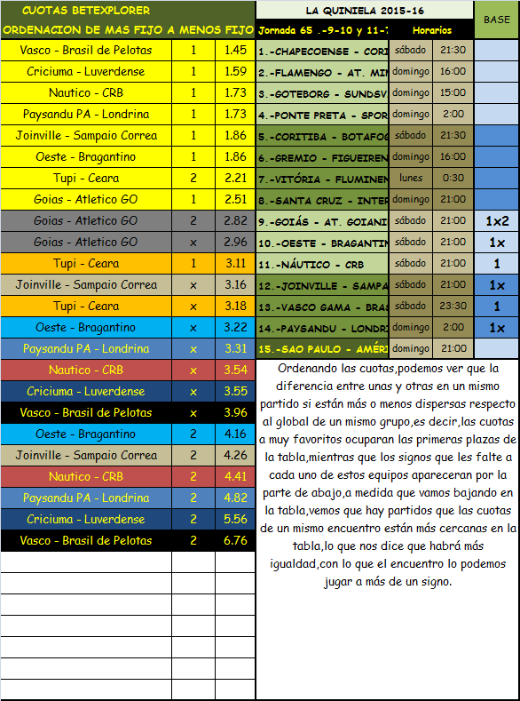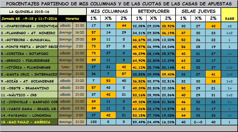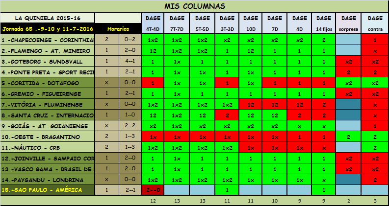 QUINIELA JORNADA 65, SABADO, DOMINGO Y LUNES, 9-10-11 JULIO 2016.