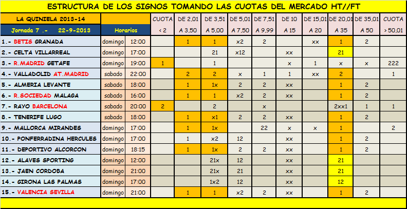 Quiniela jornada 7 y quinigol jornada 8,sabado y domingo 21 y 22 de Septiembre 2013.