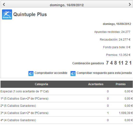 Carreras de caballos ,jornada 60 de la quíntuple plus,temporada de Otoño,1ª reunión hipódromo de La Zarzuela (MADRID),fecha 16-9-2012.Pinchando sobre la imagen podeis descargar el programa de esta jornada.