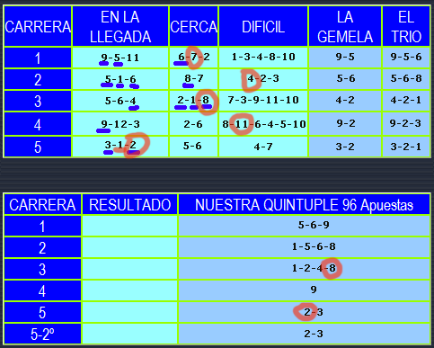 Mis favoritos para hoy,jornada 60 de la quíntuple plus:1ºcarrera: 9 PORTUECHE (GB) 56 V. Janácek G. Arizcorreta