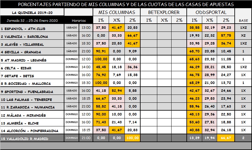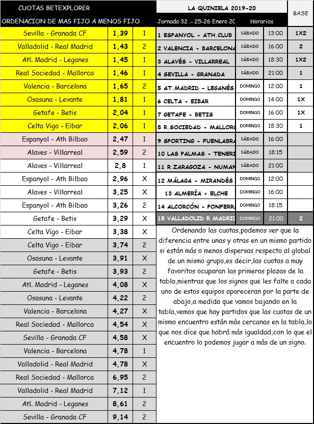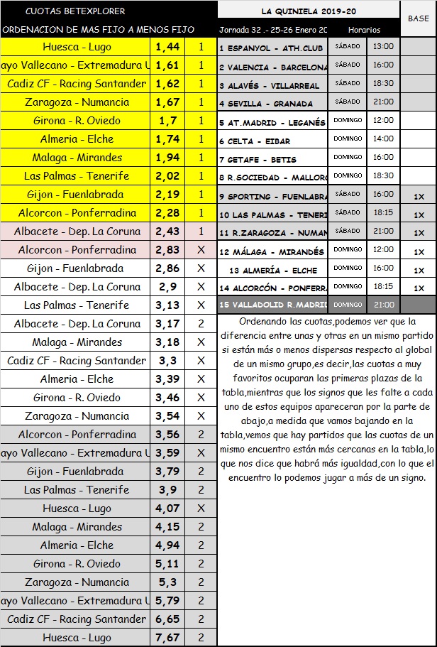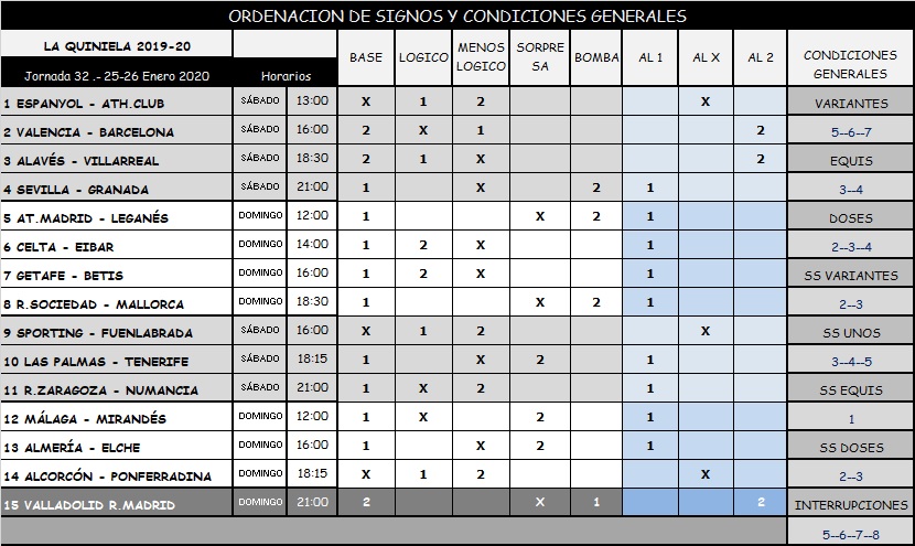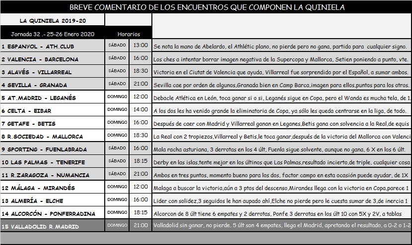 QUNIELA 32 TEMPORADA 19-20; SABADO Y DOMINGO 25 Y 26 ENERO 2020. MIS CONTENIDO