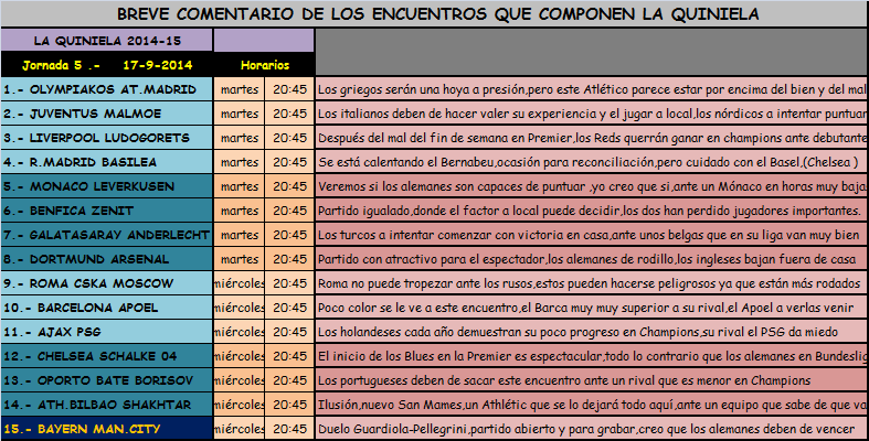 Quuiniela 2014-2015,jornada 5,Champions League