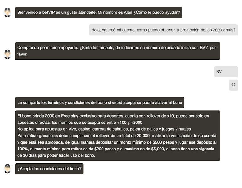 Reflexión final: obtener el bono en BetVIP puede resultar complicado debido a la falta de indicaciones claras en la página principal, lo que obliga al usuario a comunicarse con el servicio de atención al cliente.