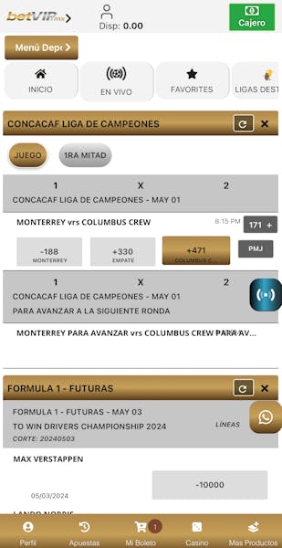 BetVIP ofrece muy buena cantidad de mercados de apuestas para eventos destacados como la Champions League. Por ejemplo, para la vuelta de la semifinal entre PSG y Dortmund ofrecieron 186 mercados de apuesta en comparación con los 97 de Bet365. Sin embargo, los mercados y cuotas entremezclados en la página principal pueden resultar confusos para algunos usuarios, por lo que se recomienda prestar atención al hacer pronósticos.