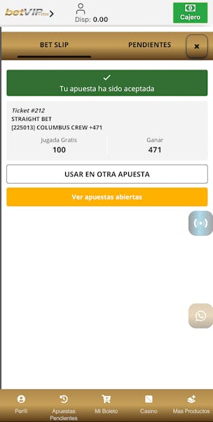 | Cómo obtenerlo | Realiza tu primera apuesta de al menos $200 MXN y si el marcador resulta en contra, BetVIP te regresa una apuesta gratis del mismo monto para que sigas jugando. |
