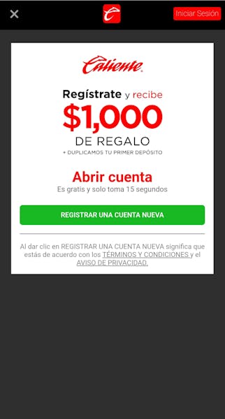 Celebro las interesantes promociones que me ofreció Caliente al crear mi usuario. Esta casa de apuestas me recibió con un bono sin depósito de $1,000 MXN solo por registrarme.