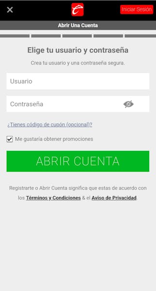 El registro se puede hacer tanto en la versión web como en la app móvil e incluso esta última opción ofrece la posibilidad de autocompletar el registro vía Facebook. Sin embargo, te recomendamos realizar tu proceso manualmente, ya que si pierdes acceso a tu cuenta de Facebook o sufres algún hackeo en dicha red, tu cuenta en Caliente podría ser vulnerada.