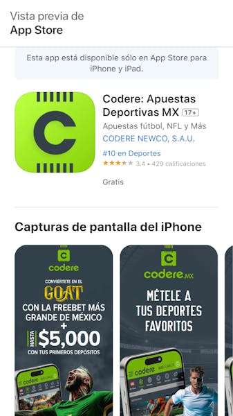 La buena noticia para México es que la descarga de Codere app está disponible tanto en la Google Play Store como la App Store, por lo que no se necesitarán pasos extras para obtenerla.