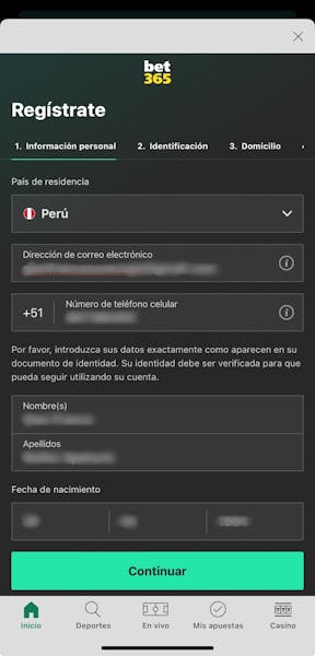 El proceso para crear tu cuenta en Bet365 es bastante simple y no debería tardarte más que algunos minutos. Luego de darle clic en “Registrarte”, deberás ingresar la siguiente información y podrás empezar a jugar inmediatamente: