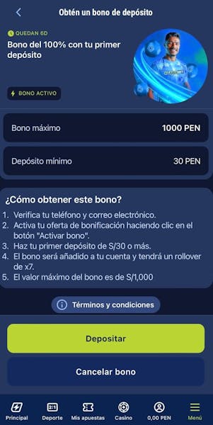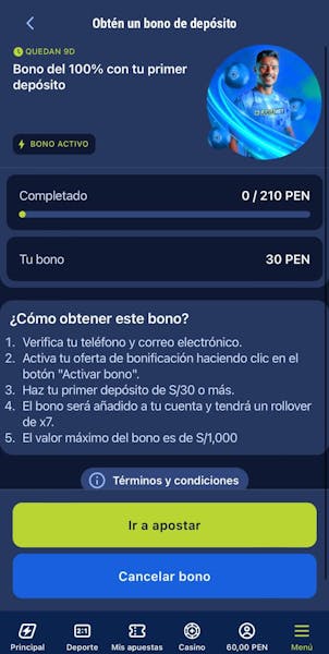 | ✅ Bono de bienvenida: 100% hasta S/1000 | ❌ Faltan estadísticas |