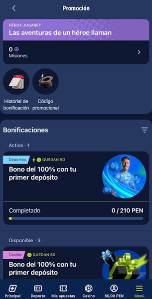 - Bonos de bienvenida y códigos promocionales de Jugabet