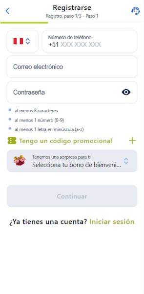 - Primero, tendrás que colocar tu información como número, correo y una contraseña.
