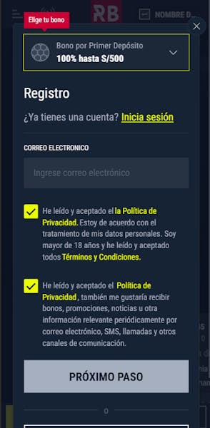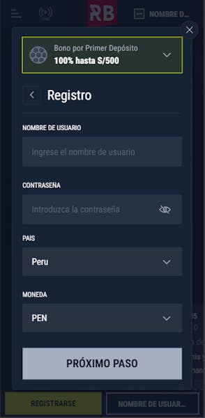 - Completa el registro y haz tu primer depósito de al menos S/100.