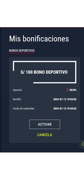 Cómo obtenerlo | Depósito mínimo: S/100. Para recibir el bono, apuesta el depósito 1x en un evento con cuota mínima de 1.50. |