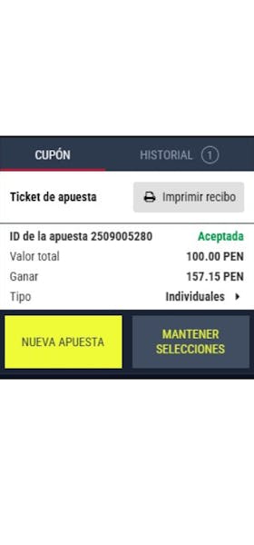 Posteriormente, tendrás que realizar una o varias apuestas equivalentes al monto depositado. Es decir, si depositaras S/100, tendrías que acumular S/100 en total sin importar el numero de apuestas, siempre a cuotas iguales o superiores a 1.50. Cuando estas apuestas sean resueltas, recibirás el saldo de bono equivalente al valor tu depósito en tu cuenta. Tendrás 30 días para cumplir con este requisito, contados a partir del primer depósito.