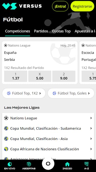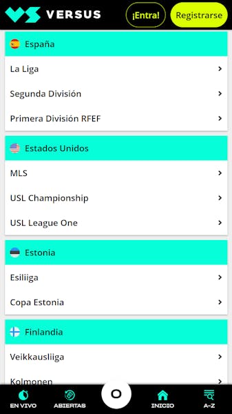 El proceso para las apuestas en directo en Versus es casi idéntico. En la sección principal de la home de esta casa de apuestas deportivas encontrarás decenas de opciones para colocar apuestas en directo.