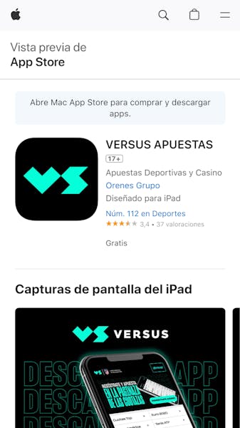 La descargué directamente desde la App Store haciendo clic en el icono correspondiente en la web de Versus, una opción que siempre sugiero para garantizar la seguridad en la descarga.